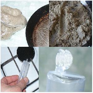 После этого пошел по магазинам, где купил: пробирочку, шприц 20 мл., 4 резистора мощностью 2 Вт каждый - на обратном пути из магазинов (после долгих поисков) нашел небольшую кучку песка, откуда и взял пригоршню - после этого радостный прибыл домой.