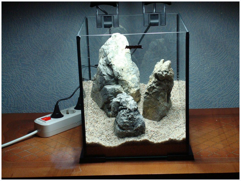 Ну вот, мы и добрались до самого хардскейпа. Очень мне нравятся работы Григория Полищука, за основу взял один из оформленных им аквариумов.