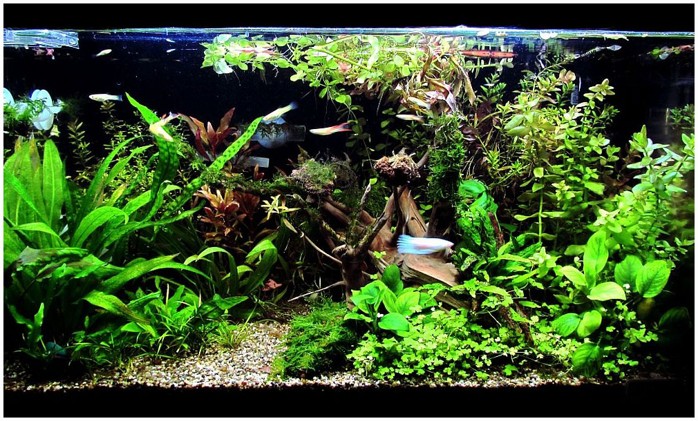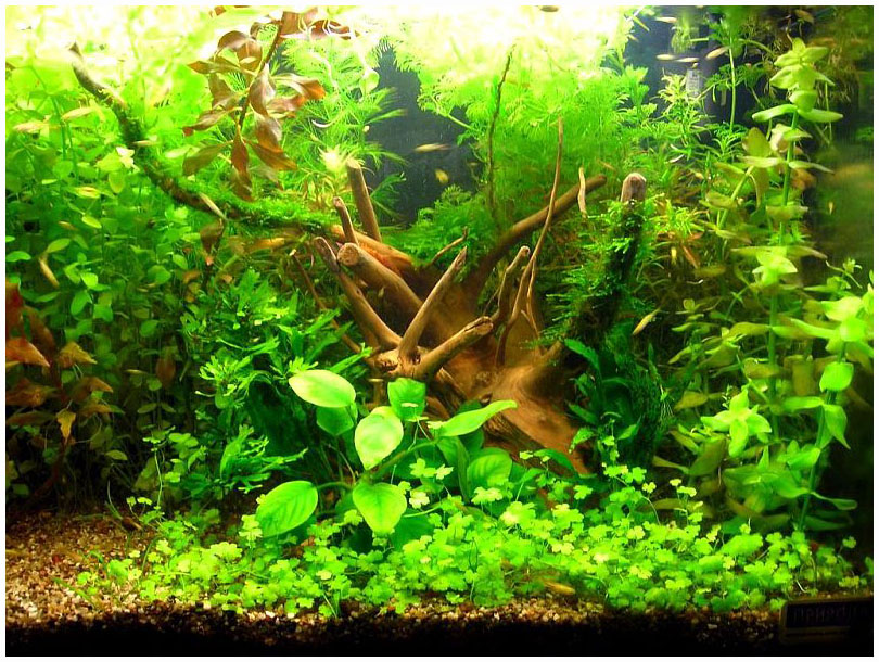 Аквариум зарос до степени непроходимых джунглей... рыбкам приходилось не проплывать, а протискиваться среди растений.