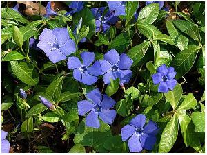 Есть такая песня: "Несе Галя воду, коромысло гнется, а за нею Иванко, як барвинок вьется". Так вот это и есть тот самый вьющийся барвинок. В лесу у нас он образовывает целые коврики. По одной из легенд, барвинок сильно переживал, что по образу и подобию слишком походил на фиалку цветками, но та затмевала его собой, благодаря аромату, и отнимала всю человеческую любовь и внимание. И пожаловался барвинок богине Флоре: "Я красив, но меня никто не замечает и не любит. Надели же меня каким-нибудь талантом, чтобы и меня заметили и полюбили". Мудрая богиня Флора подумала и решила так: "Ты обладаешь терпением и выносливостью, наделю тебя самым долгим периодом цветения, чтобы успевал зацвести раньше фиалки, и продолжал цвести после её смерти". Так и сталось.