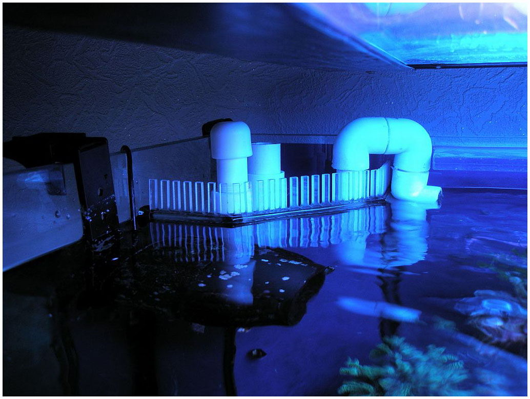 Долив, как и в прошлой системе, с помощью механического поплавка, склеена отдельная шахта дабы в поплавковой камере была низкая соленость, - это предотвратит обрастание кальциевыми червями и каролины штока поплавка.