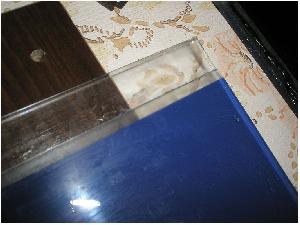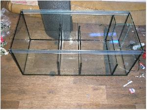 Клеится шахта в следующей последовательности: на стекло приклевается пленка фона (обрезается с краев по 5 мм., сверху берется учет для желобка), наносится силикон и прижимается второе стекло, на 2 см. ниже первого. Снова наносится силикон и прижимается третье стекло, - оно по высоте должно быть как первое. Вот собственно и все стекла, все 4мм. в сумме - 12 мм.