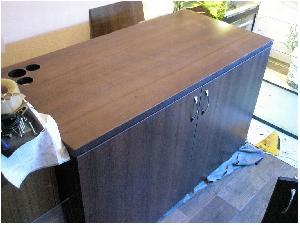 Тумбу я сделал с выезжающим столиком, оказалось очень удобно при работе в аквариуме, да и не только, даже если направляющие рельсы и поржавеют, то их не составит труда заменить на новые.
