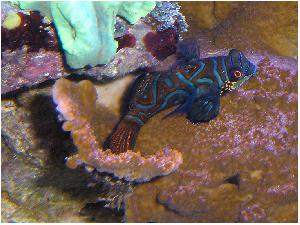 Ночное фото мандаринки (Synchiropus splendidus) которая у меня живет 2 года но ни разу не давалась на фотосессию.