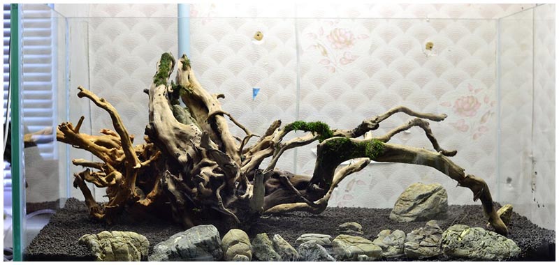 Мхи были намотаны на нержавеющую сетку и прикреплены к веткам коряг. Пока пусть нарастают, а дальше посмотрю, какие оставлять, а какие убирать.